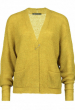 Short, open knitted vest made of acryl, wool, mohair and aplaca mix in lime green. Kort, open gebreid vest gemaakt van een licht harige acryl, wol, mohair en alpaca mix in limoen groen. Vest Kelsy has an oversized model with low-starting, long sleeves and a deep V-neck. It closes with a large pin and has stiched-on pockets on the waist.
