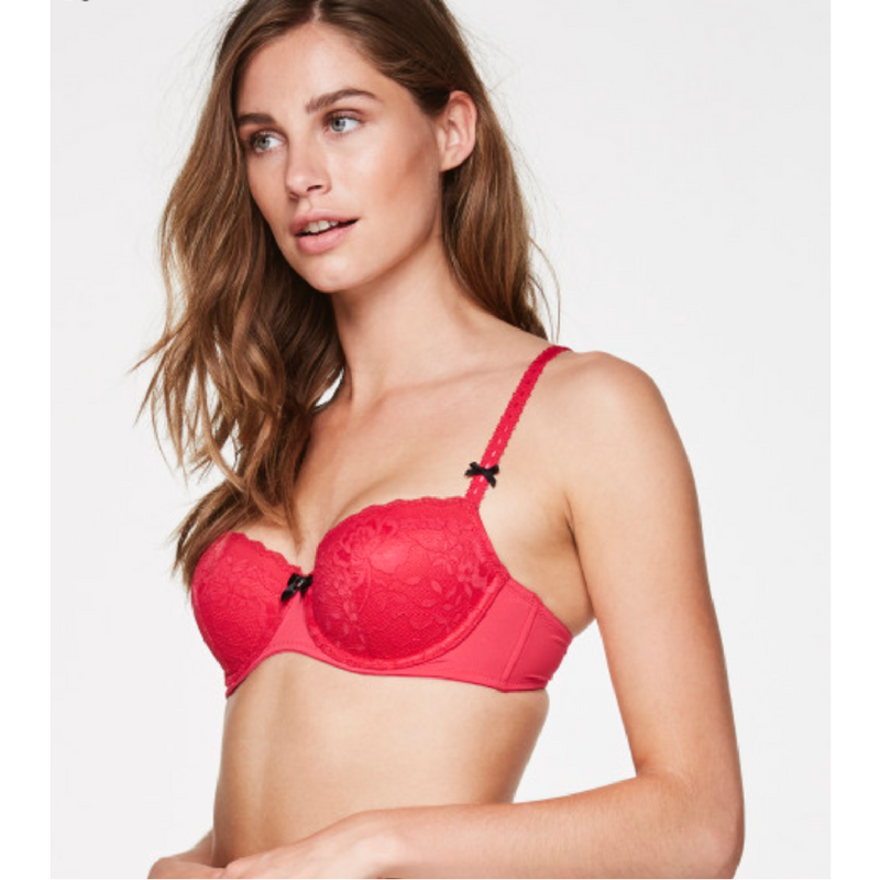 Elegant preformed underwire bra, covered in lace. With a small bow between the cups and two bows on the shoulder straps.
