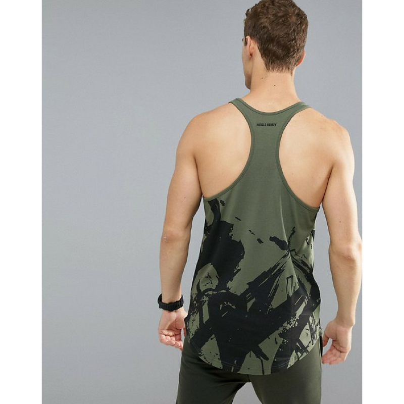 Vest in khaki with print – muscle fit