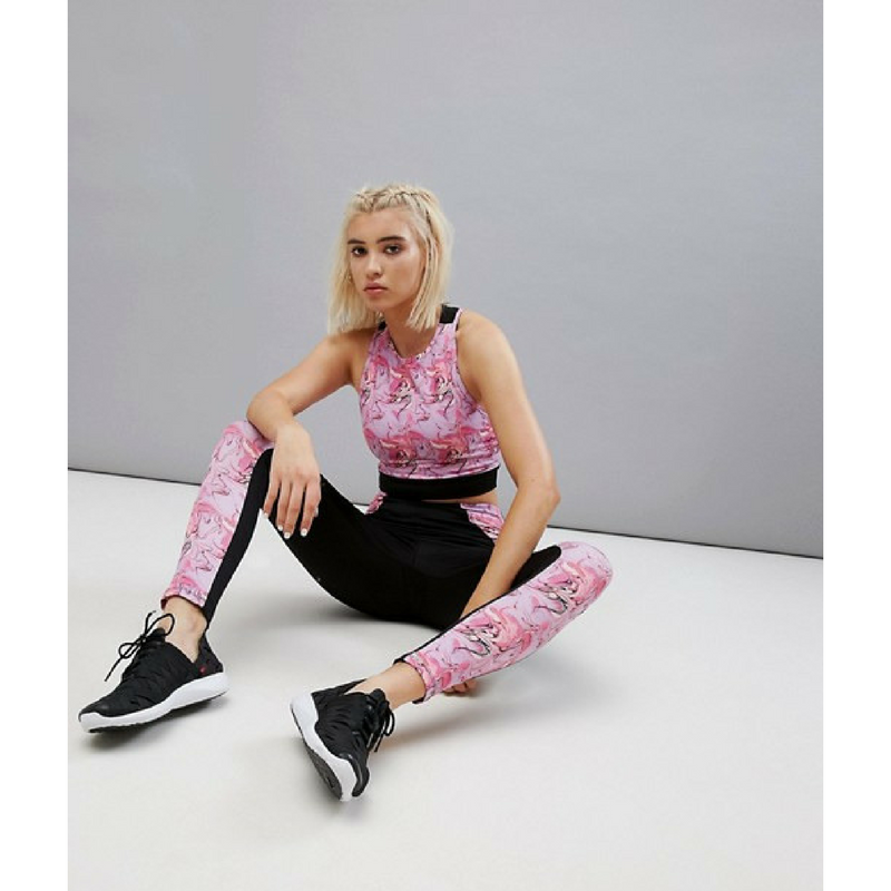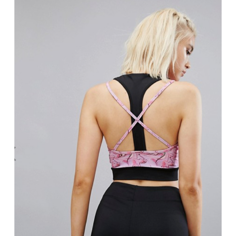 Zachte stretch stof met flamingo print, ronde neklijn en gekruiste rug.