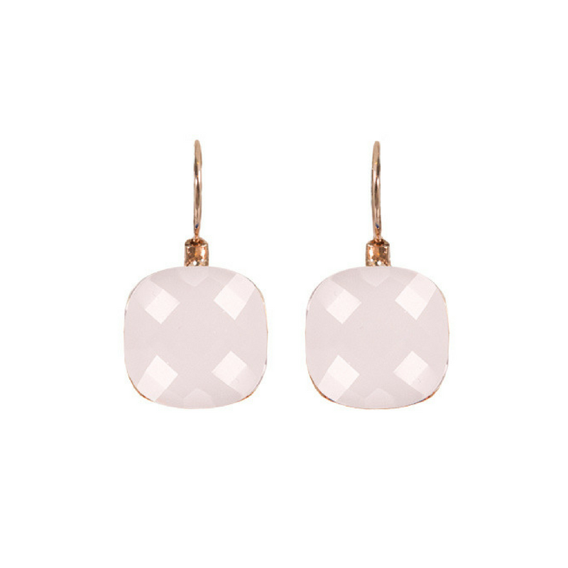 De kristal oorbellen zijn voorzien van rosegouden creolen waaraan een licht roze vierkanten steen bevestigd is. De oorbellen zijn gemaakt van stainless steel dus ze verkleuren niet, handig!