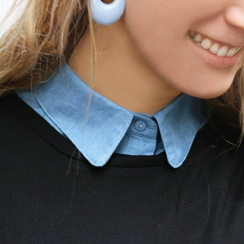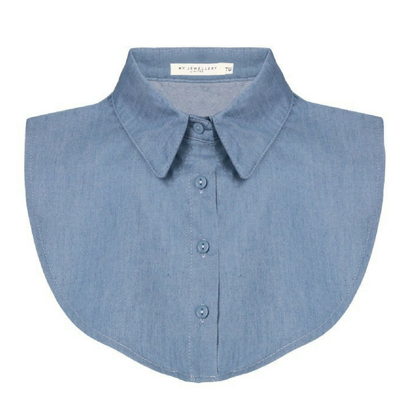 Een los kraagje in denim stof moet echt in jouw kast hangen! Je ziet het de laatste tijd heel veel, een blousje onder je trui of jurkje. Wij zijn grote fan van deze trend en hebben daarom nu een los, denim kraagje in onze collectie! Onder het kraagje loopt nog een stukje stof door, waardoor hij beter blijft zitten en je niet ziet dat het een los kraagje is. Het zit ook nog eens veel fijner dan een blouse onder je trui!